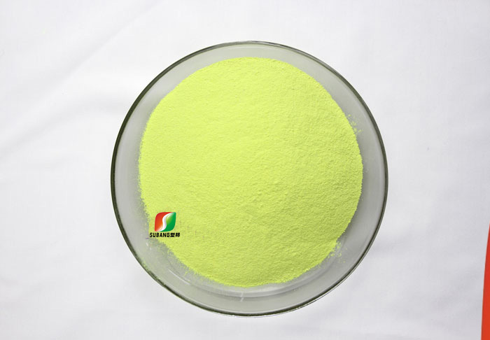本品使用溫度常溫至280℃以內(nèi),可溶于80倍的軟水中,耐酸堿程度為pH=6~11,它可與陰離子表面活性劑或染料、非離子表面活性劑、雙氧水同浴使用。在同等用量的情況下白度比VBL、DMS高,而水溶性能與VBL和DMS相差無幾。與CBS-X相比,水溶性能稍差,但CBS-X可以隨水帶走,涂料干了容易遷移和泛黃,本品解決了在水性涂料、水性漆里熒光增白劑的耐溫性、耐候性、耐黃變、抗遷移性。